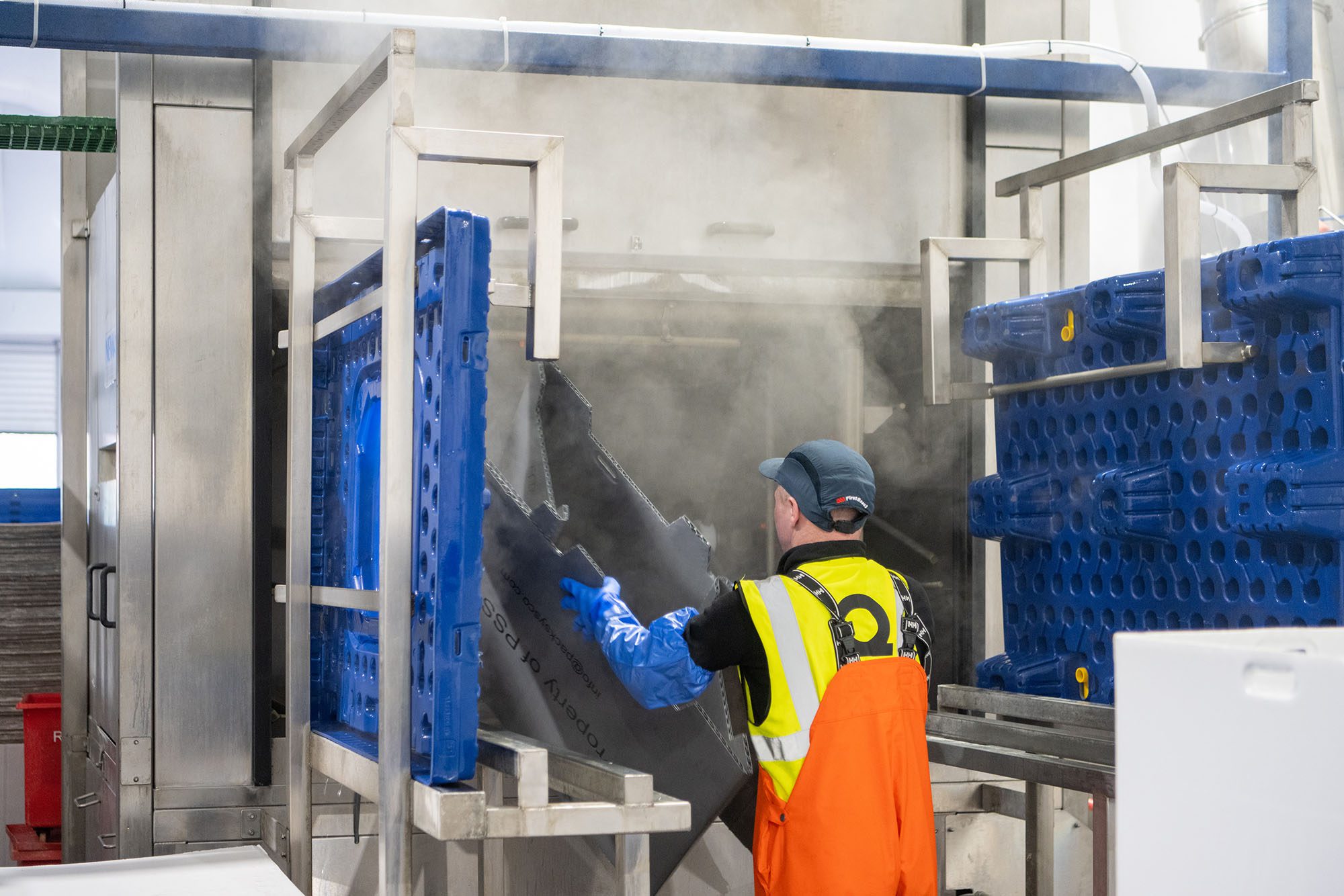 The S-Bin can be cleaned using power washers, however for regular use in high quantities we would recommend using a specifically designed bin washing machine. We can assist in the specification and sourcing of such a machine which offers consistently high-quality cleans at high temperatures.