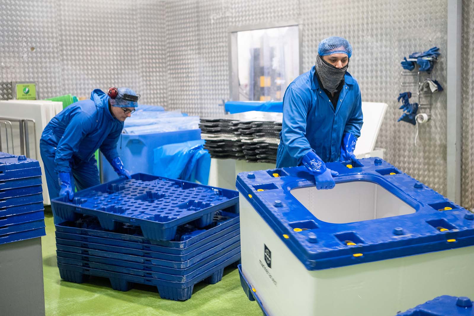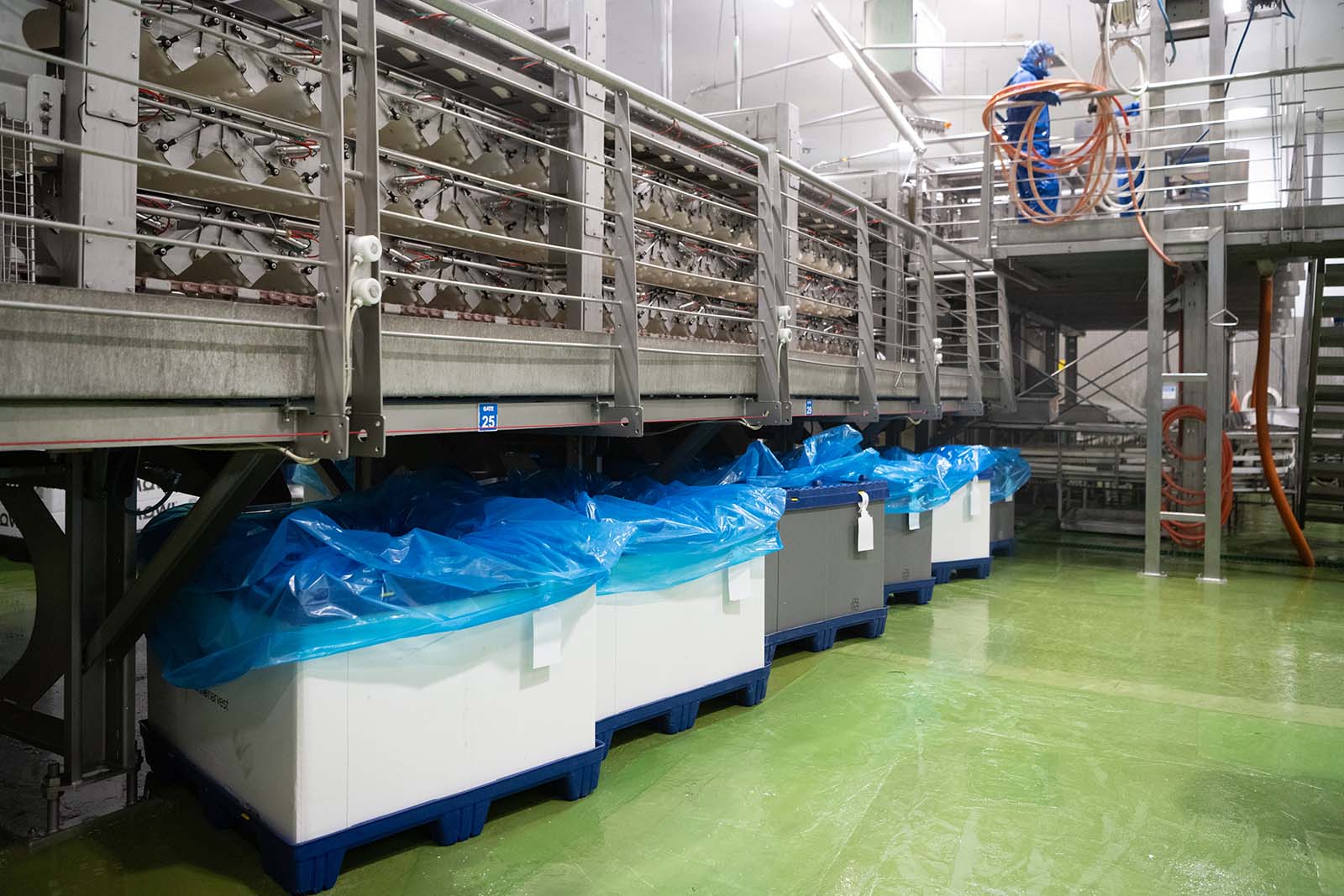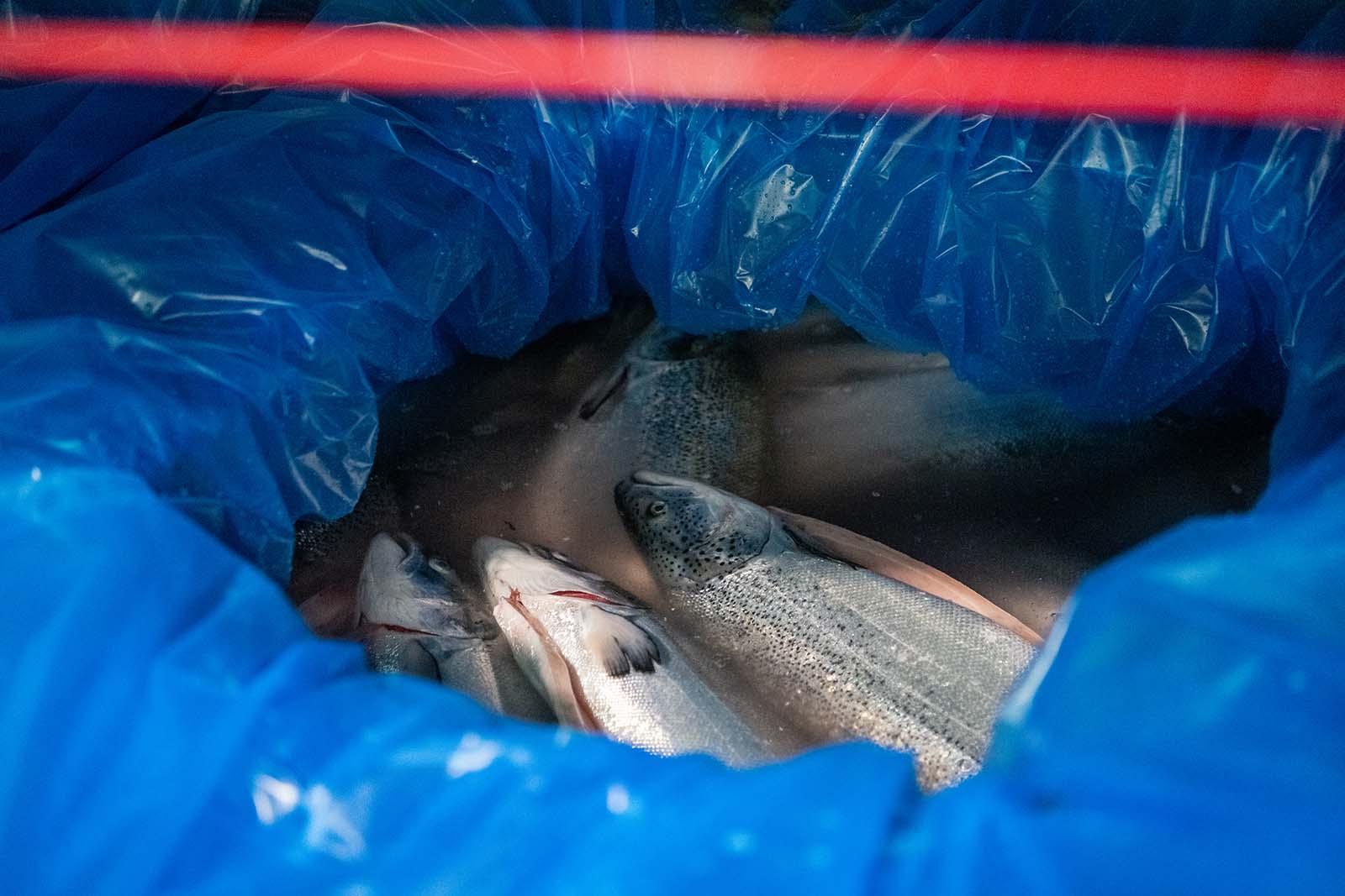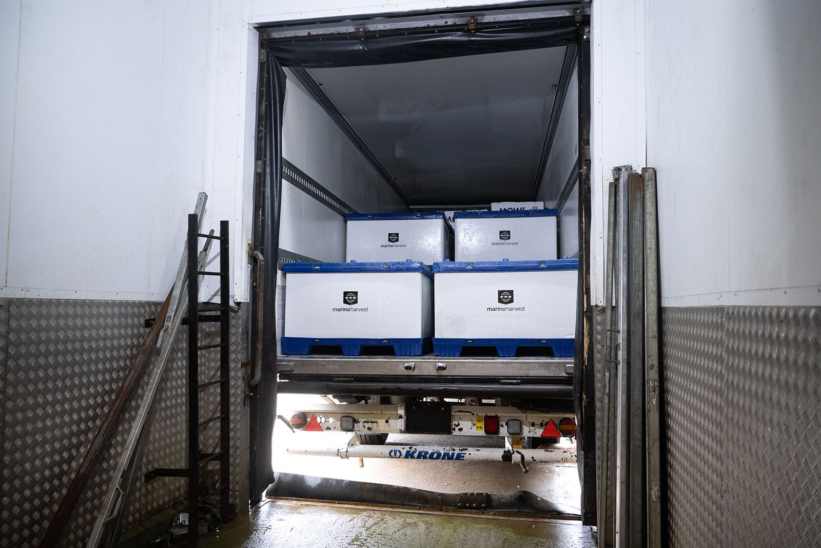 Filling the bins is simple. Using a fish grader, HOG salmon can be dropped into the bin. Salmon is suspended in ice slurry, protecting it and making sure it remains fresh during transit.