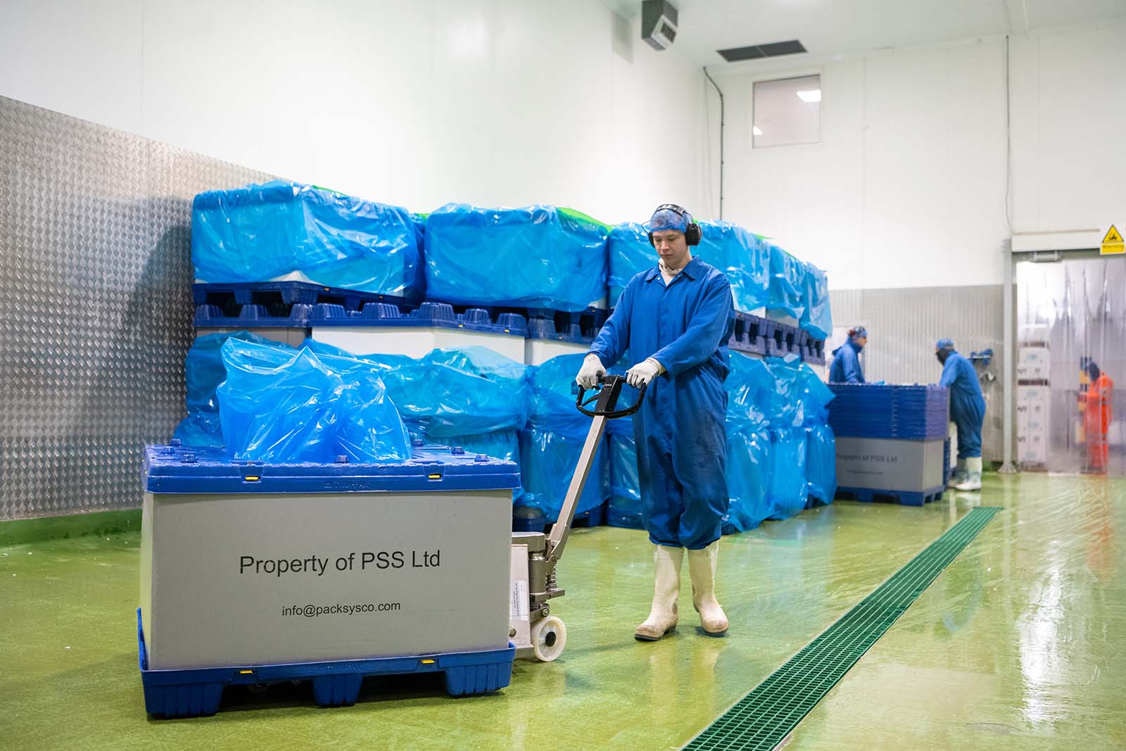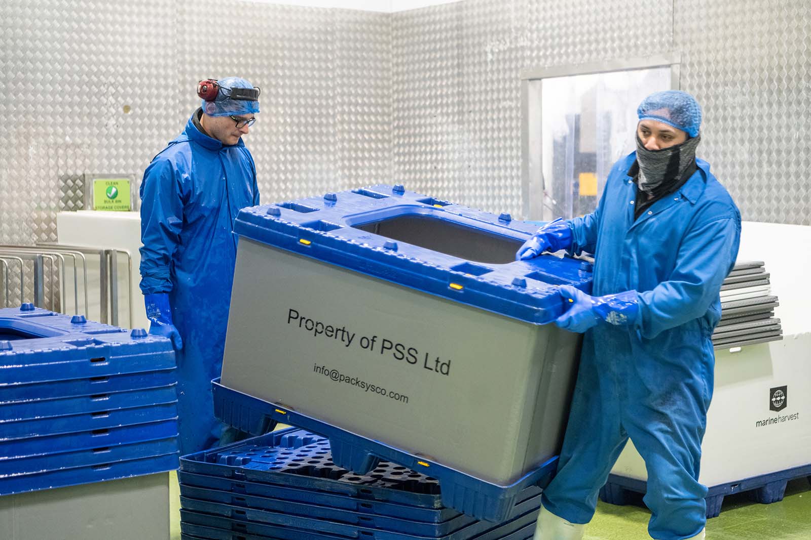 The S-Bin with 745mm sides has a capacity of around 500kg – for example, 400kg HOG salmon along with approximately 100kg of slurry ice.